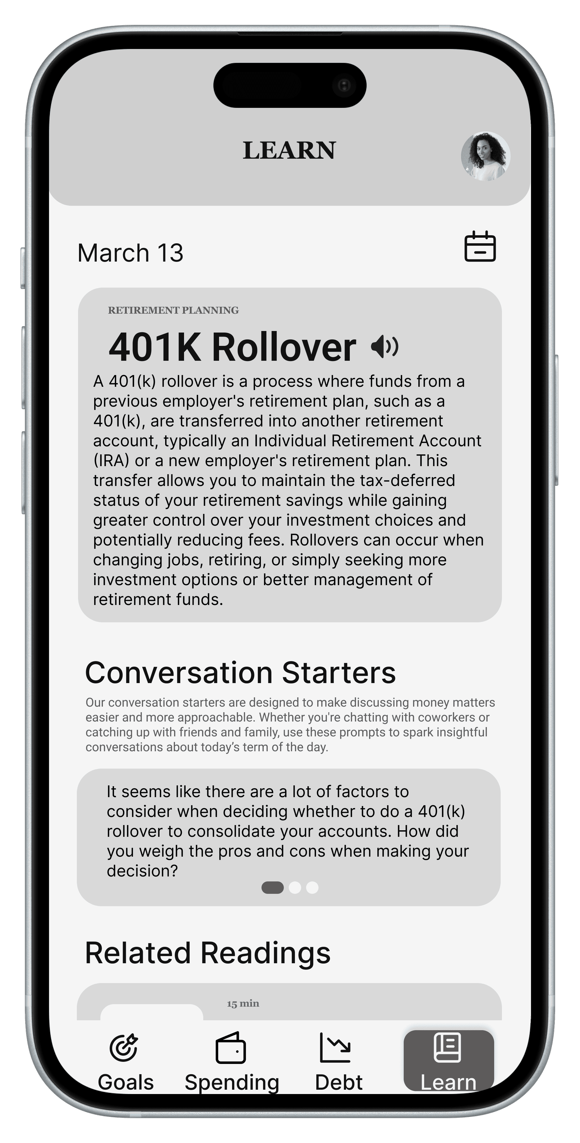 Our intervention should be a central resource that empowers users with the terminology needed to feel confident when discussing finances