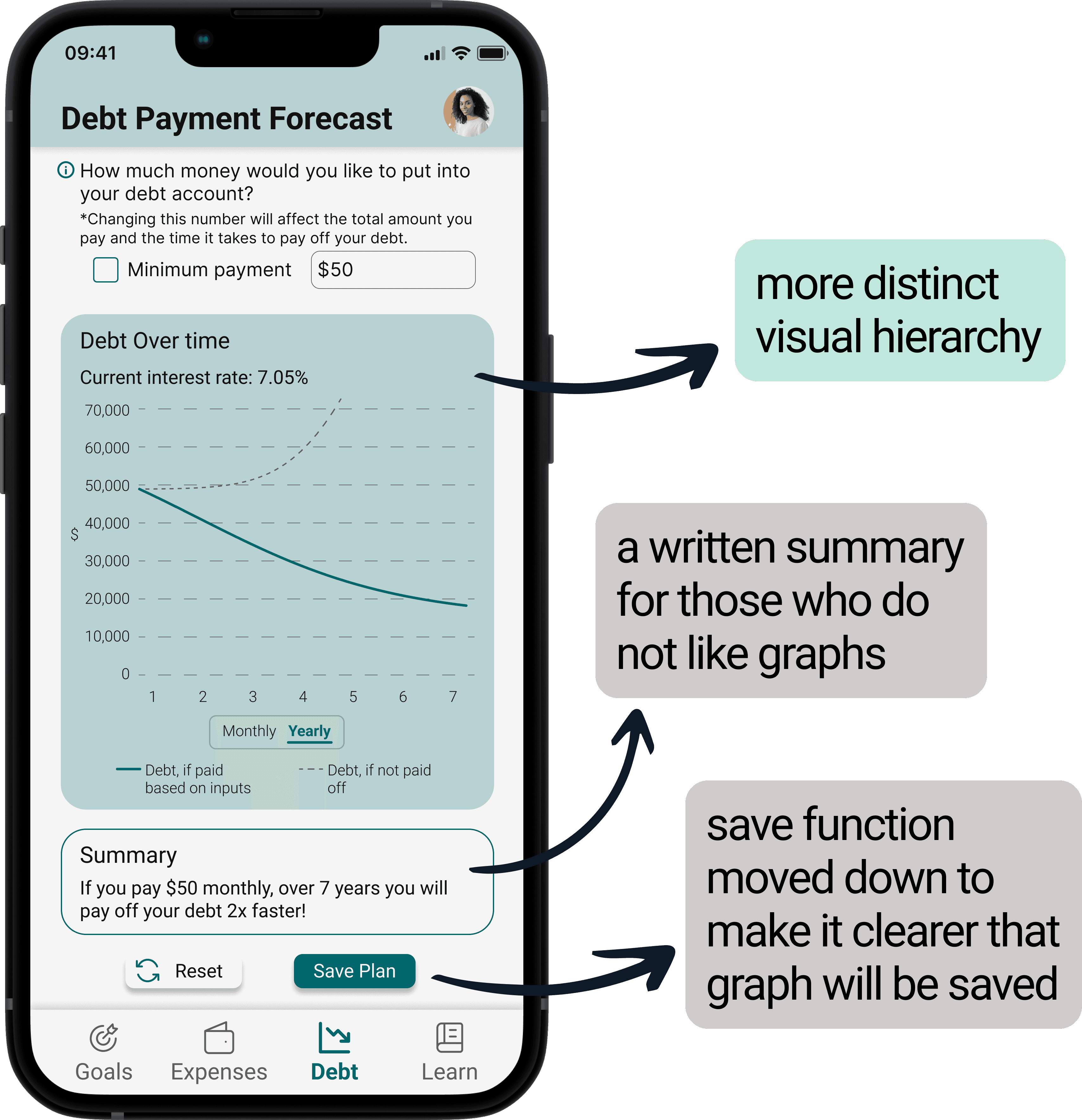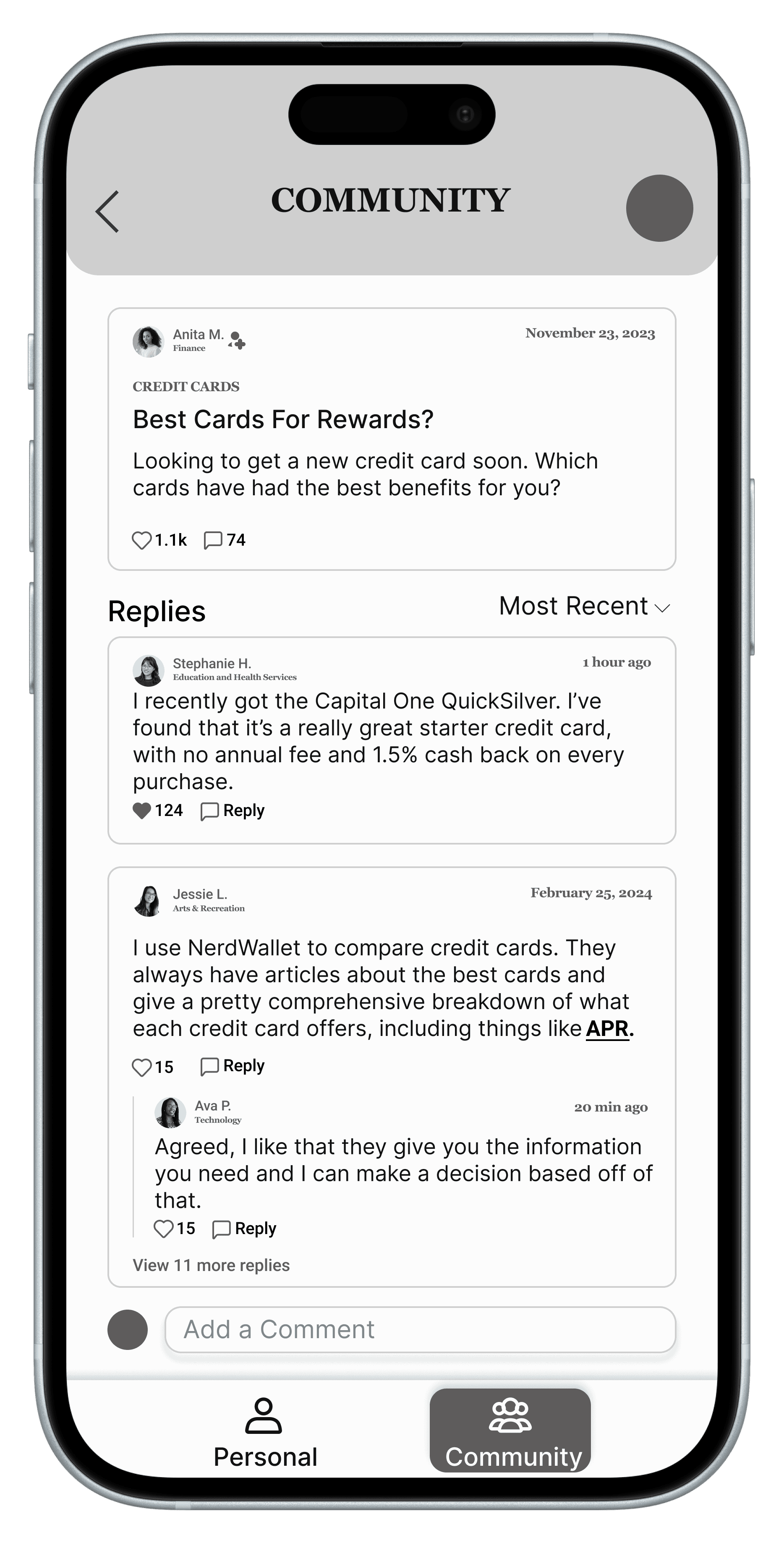 Based on brainstorming outcomes and wireframe feedback we pivoted part of our solution, swaping the community section with a learn section and got positive feedback on it from the final 2 users.
