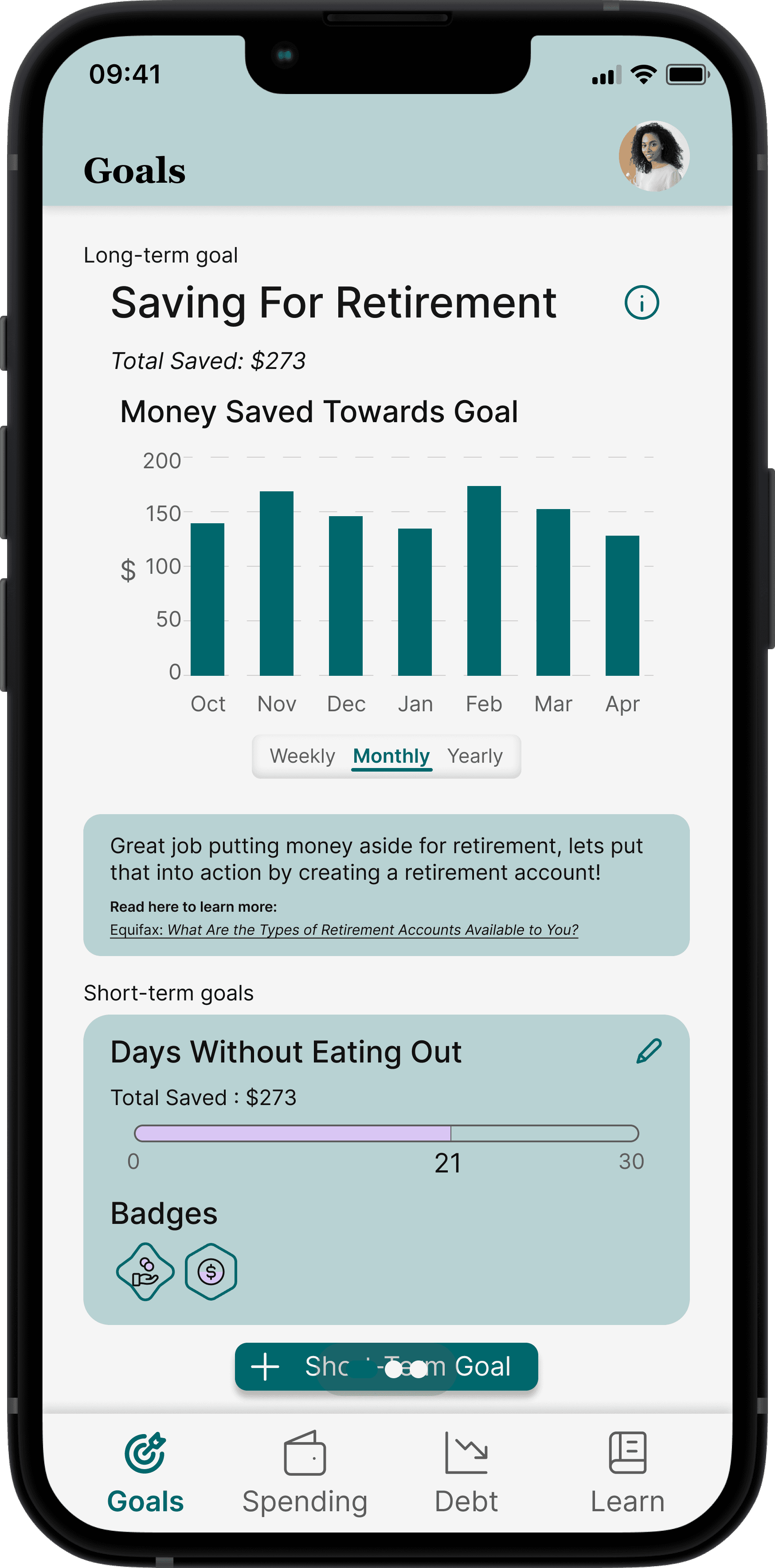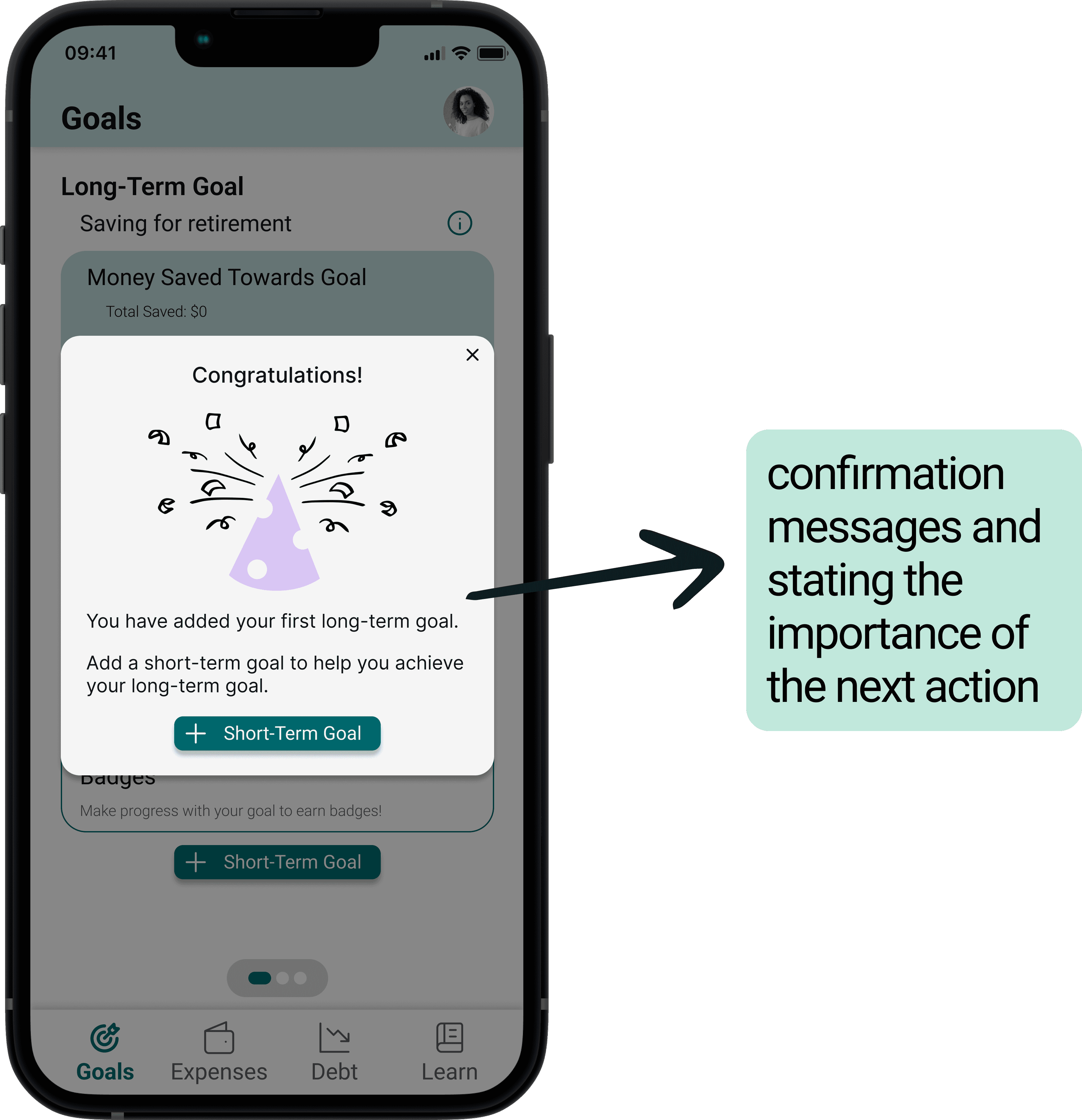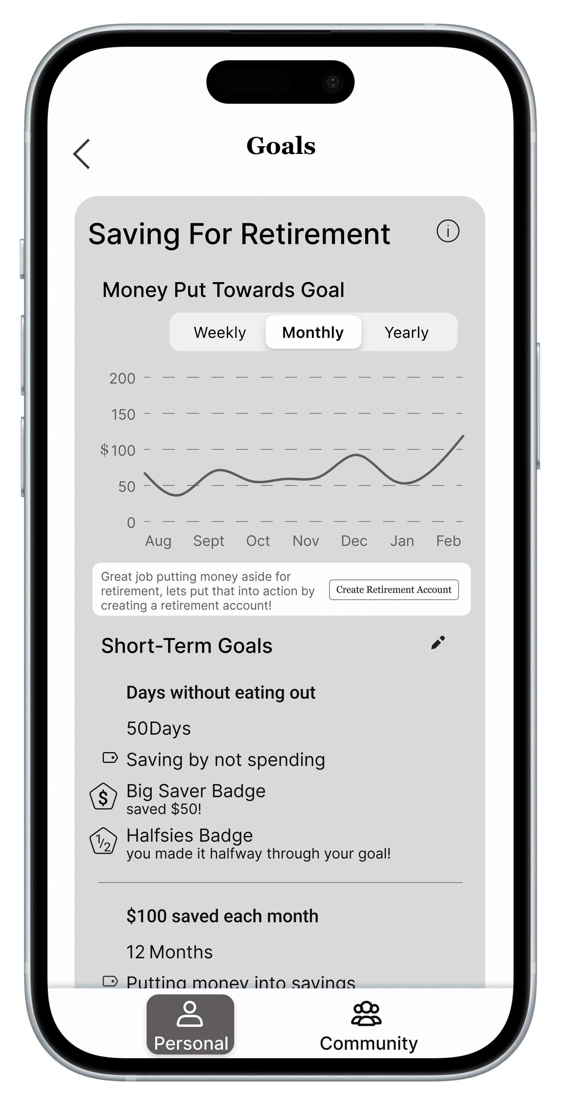 Our intervention should make long-term financial decisions simplified and feel more attainable and short-term goals should be emphasized