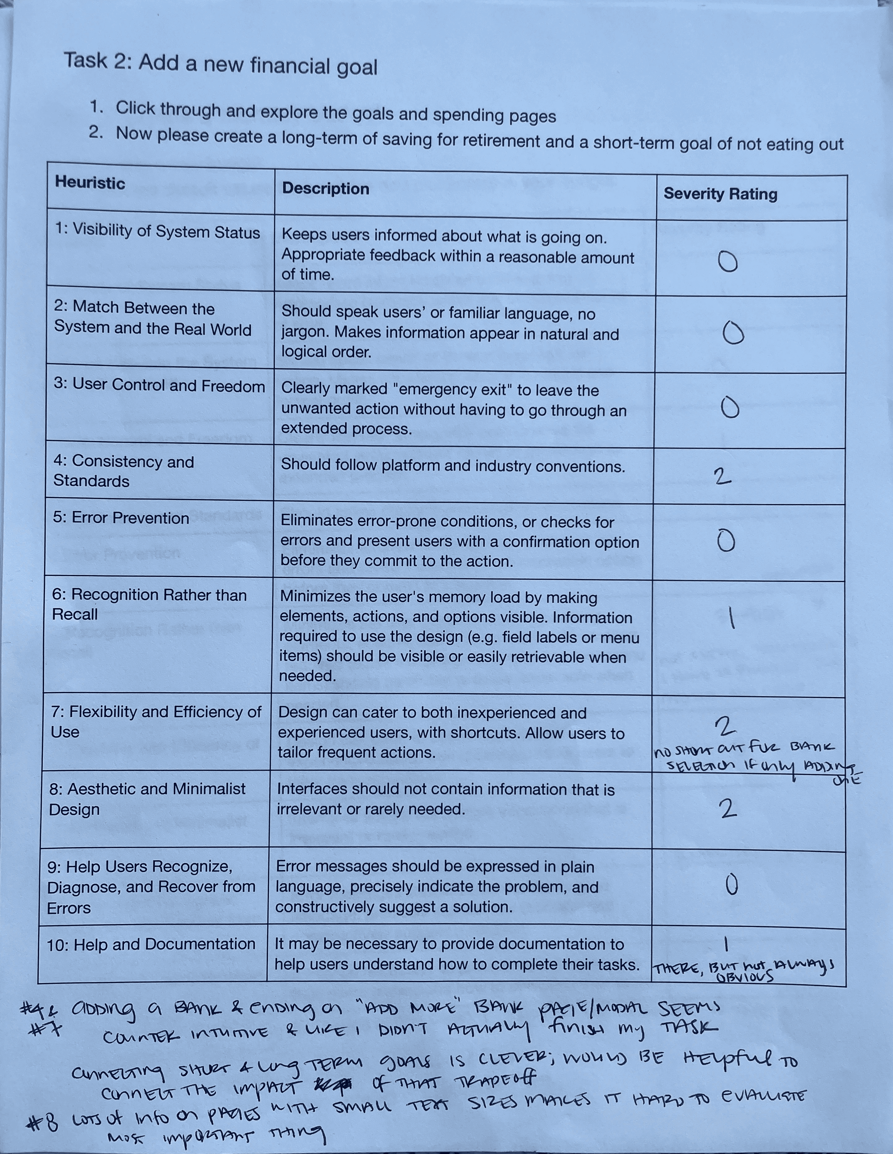 Our 4 evaluators were asked to rate based off of Nielson Norman’s 10 Usability Heuristics and conventions within the financial technology industry.