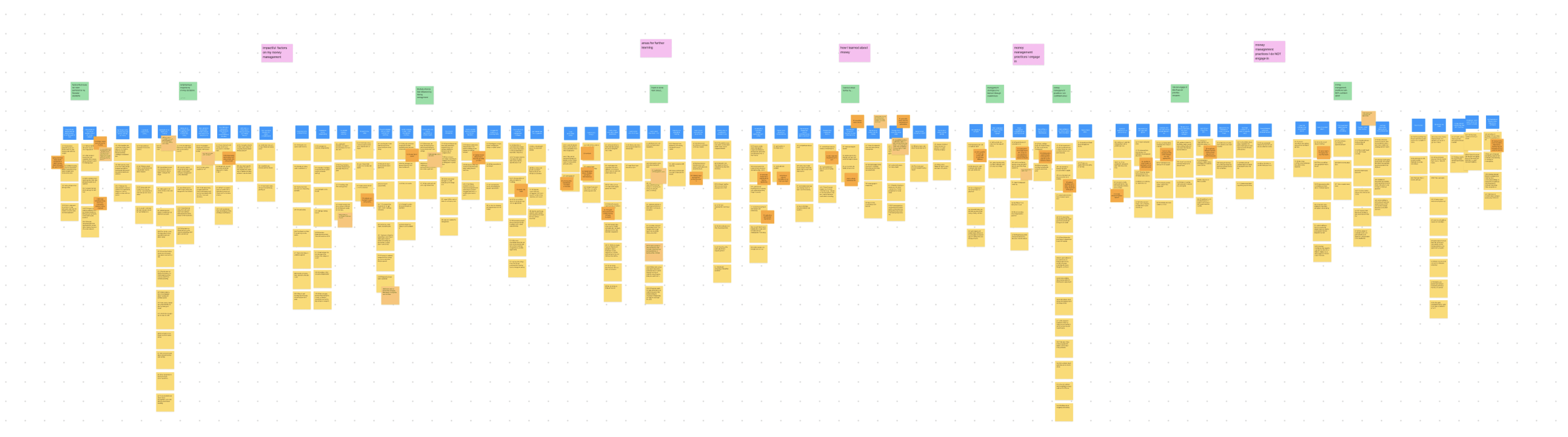 We synthesized data from user interviews through affinity mapping. We ended up with 335 sticky notes from our interpretation session.