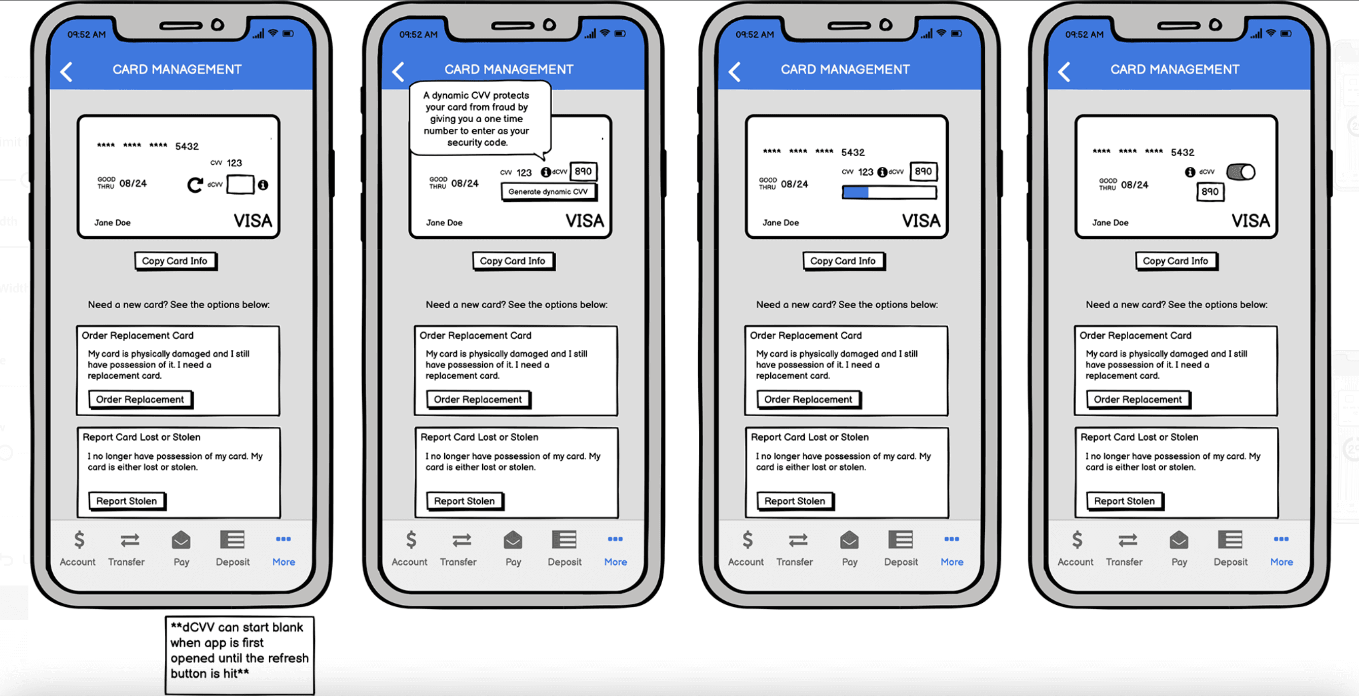 Concepts for integrating dynamic CVV's into a banking mobile app