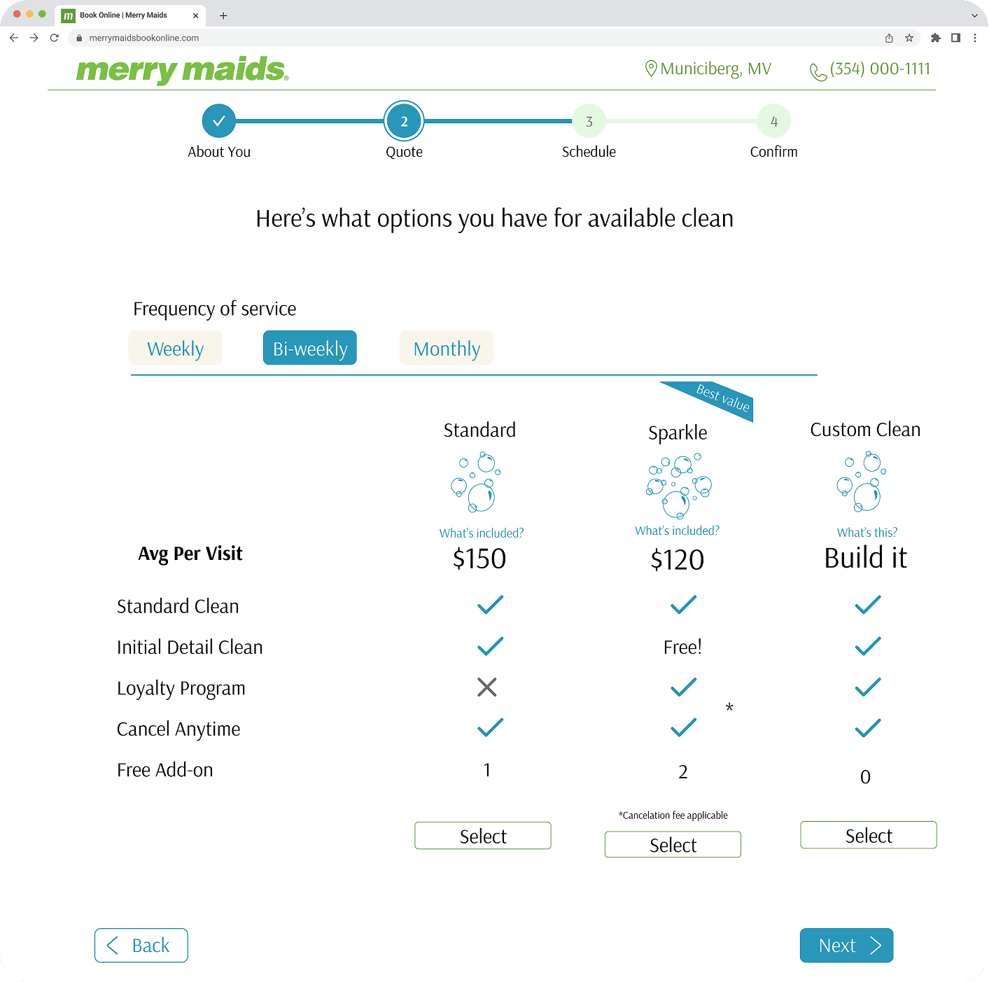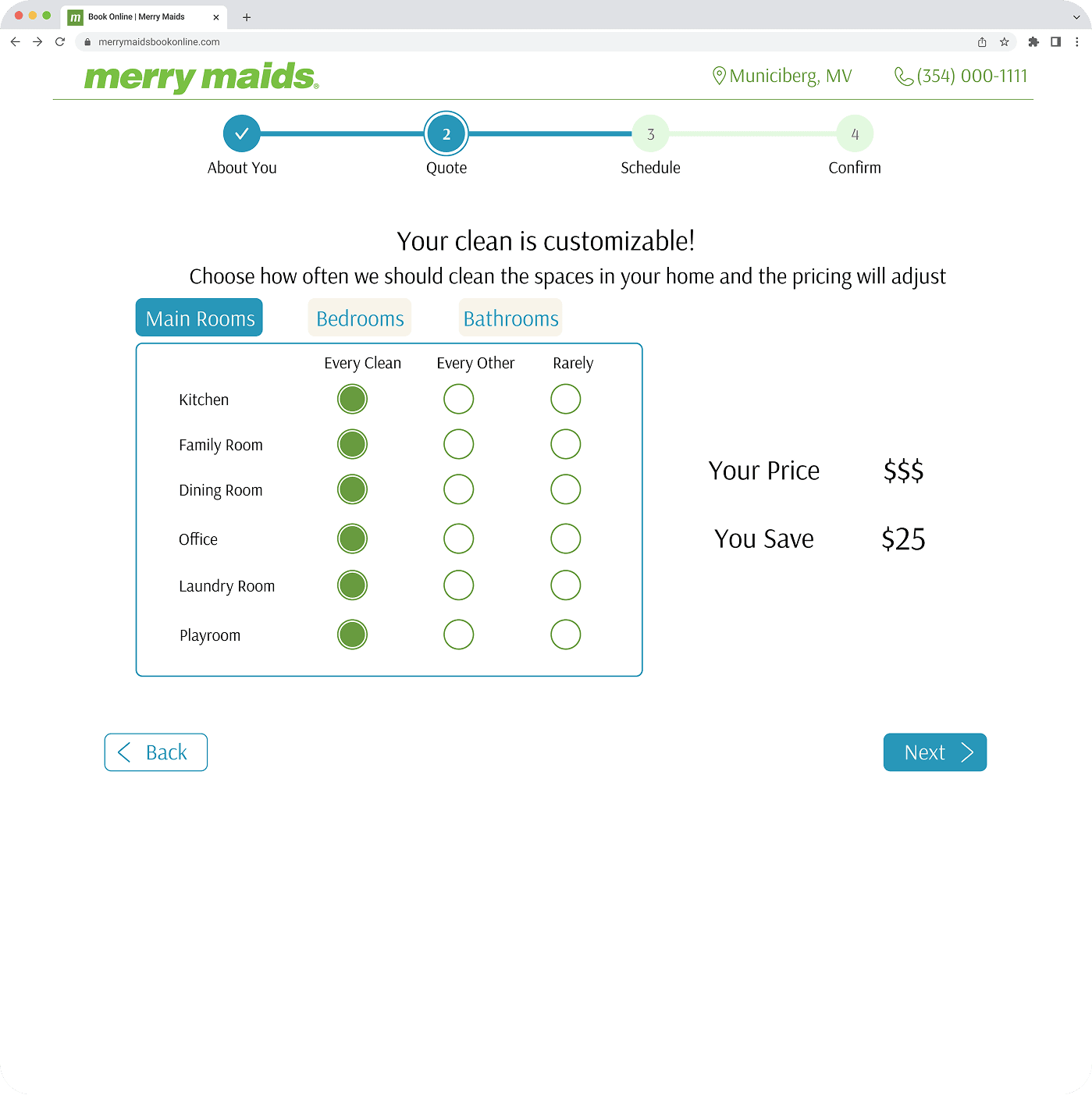 An e-commerce platform to improve customers' experiences when purchasing a cleaning service on the Merry Maids website.