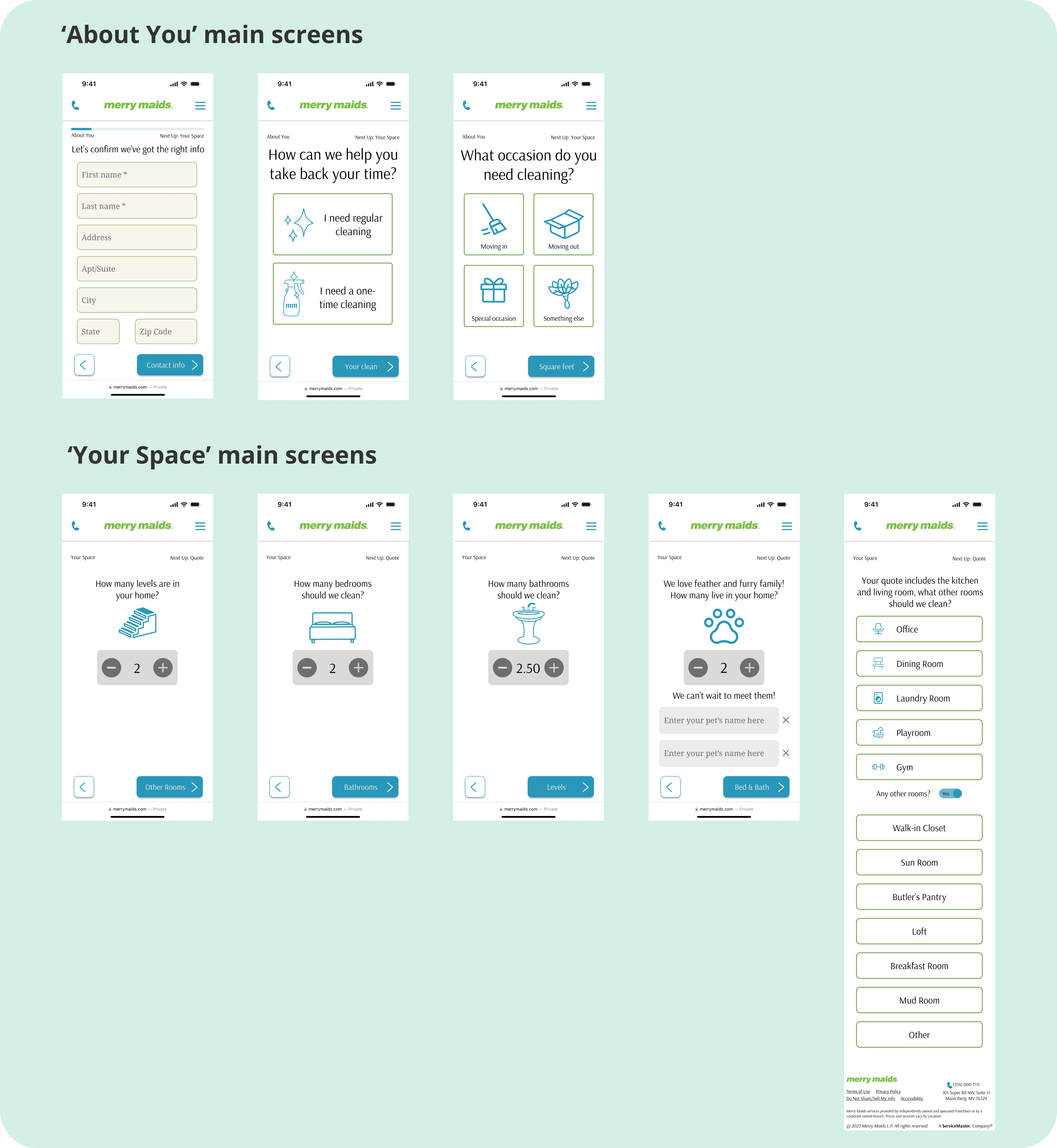Working on the Merry Maids e-commerce project this summer taught me a lot of new skills. I was engulfed in cross-functional work, I had the chance to explore new prototyping features, and overall, was able to improve my design and research skills.