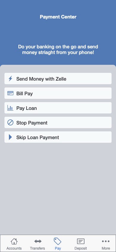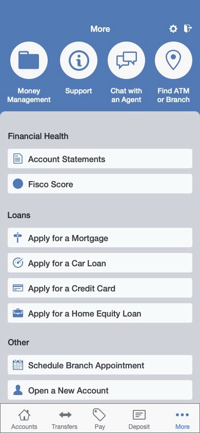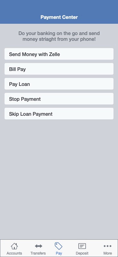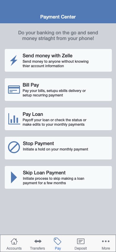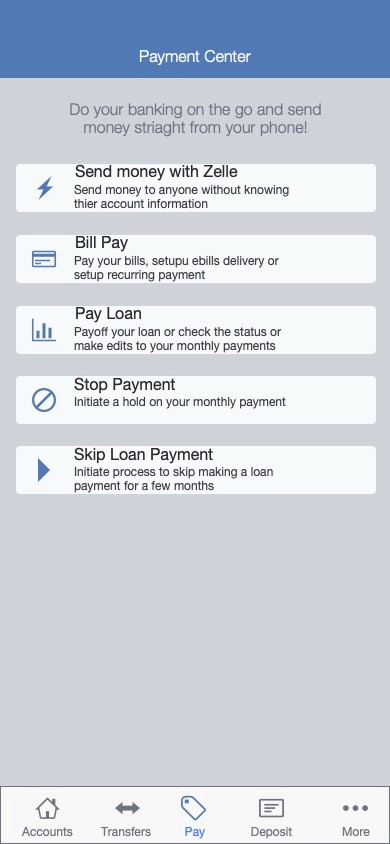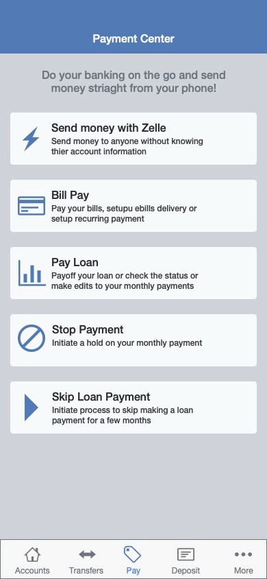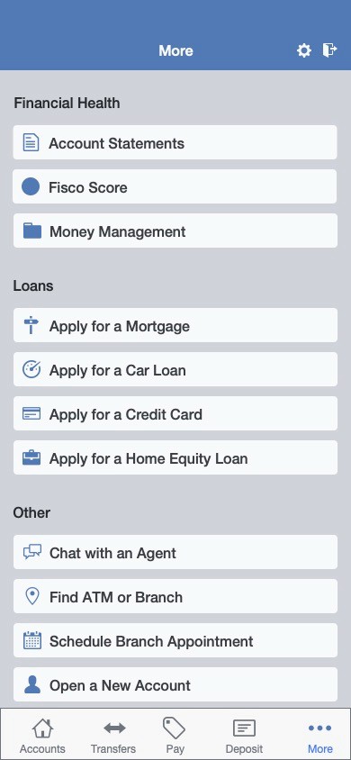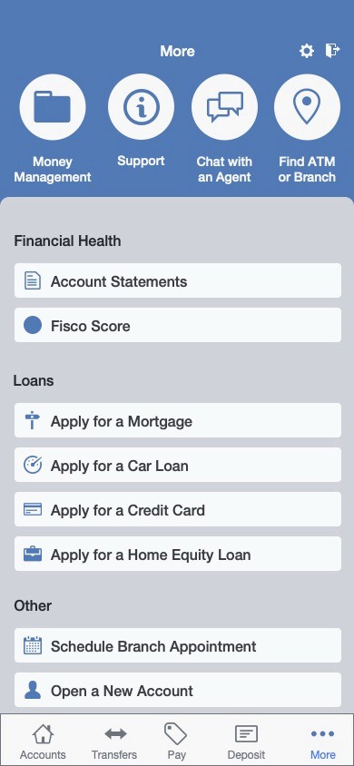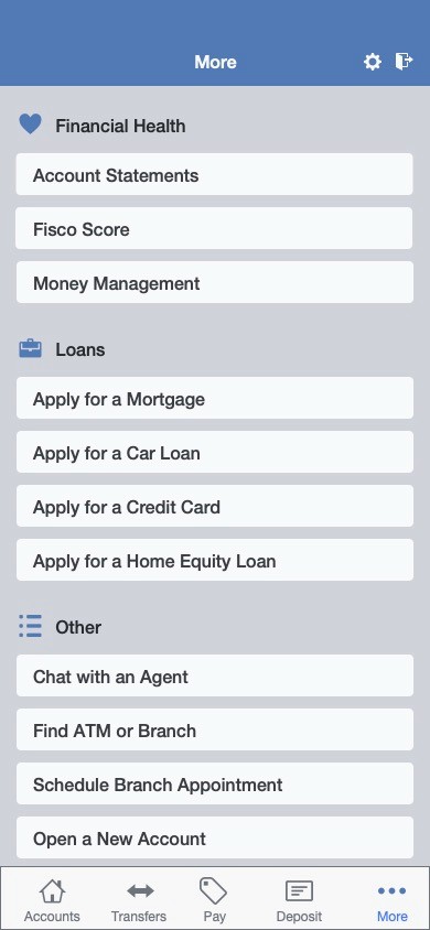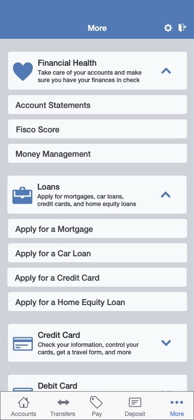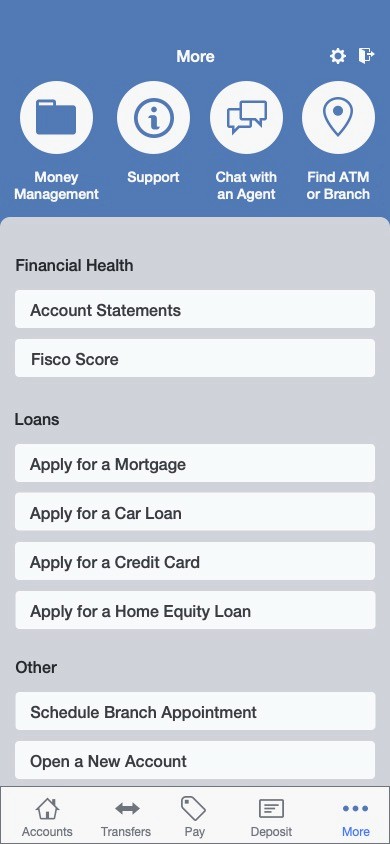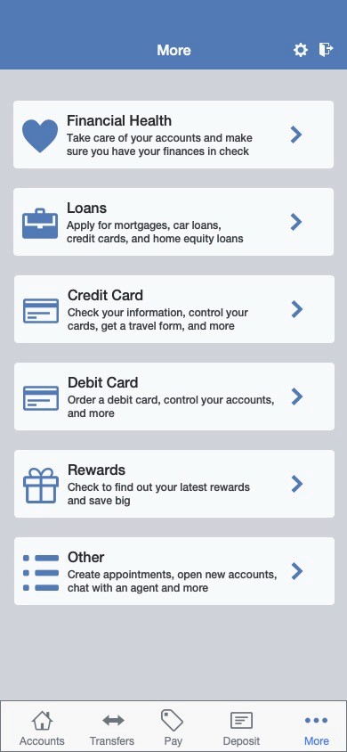 Unifying and organizing the layout of buttons in an existing banking app "Pay" and "More" screens