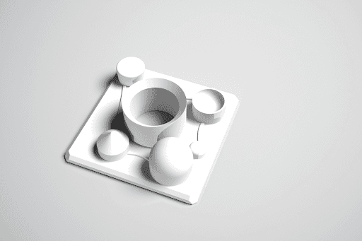 3D renders and 3D printed models of the game board pieces and pawns